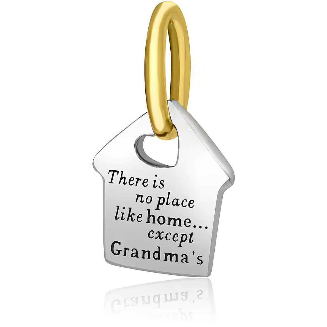 Charms di Pandora raffigurante la casa della nonna con scritta significativa "There is no place like home... except Grandma's”, in Argento 925 con lega metallica placcata in Oro 14k . La referenza è 763205C00