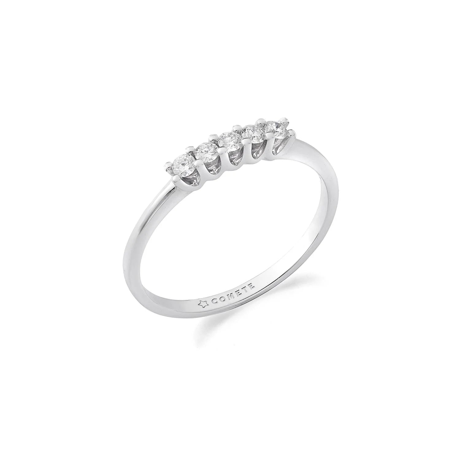 Anello da donna di Comete della collezione Trilogy. Anello in oro bianco 750. Diamanti bianchi P.Ct. 25 Colore G Purezza SI. Questo anello viene realizzato direttamente della tua misura. Quando ordini questo gioiello, indicaci di quale misura lo preferisci, provvederemo ad ordinarlo per te.