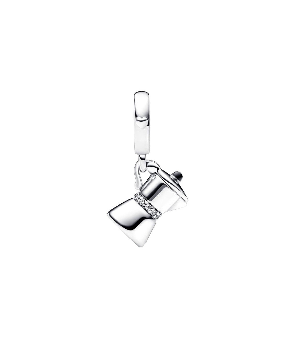 La Caffettiera, parte iconica della cultura italiana, è riprodotta in questo pendente in argento sterling 925 con il coperchio apribile impreziosito da dettagli smaltati, una fascia pavè intorno al centro e un cuore rintagliato nella parte inferiore.